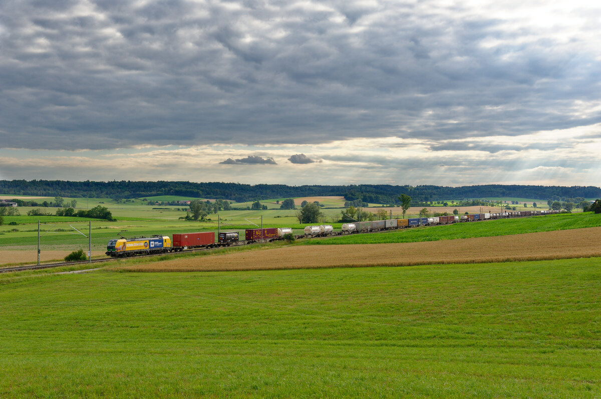 185 528 + 185 407 mit DGS 40568 am 27.02.2022 bei Wettelsheim.
