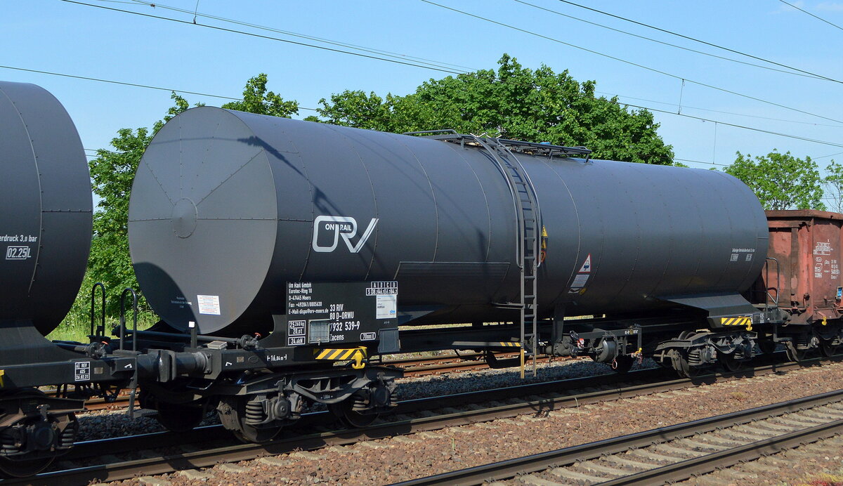 Kesselwagen vom Einsteller On Rail GmbH mit der Nr. 33 RIV 80 D-ORWU 7932 559-9 Zacens, Ladegut lt. Firmenbezeichnung (Logo) = AdBlue (Harnstofflösung) vom Hersteller skw Piesteritz in einem gemischtem Güterzug am 18.05.22 Bf. Saarmund.