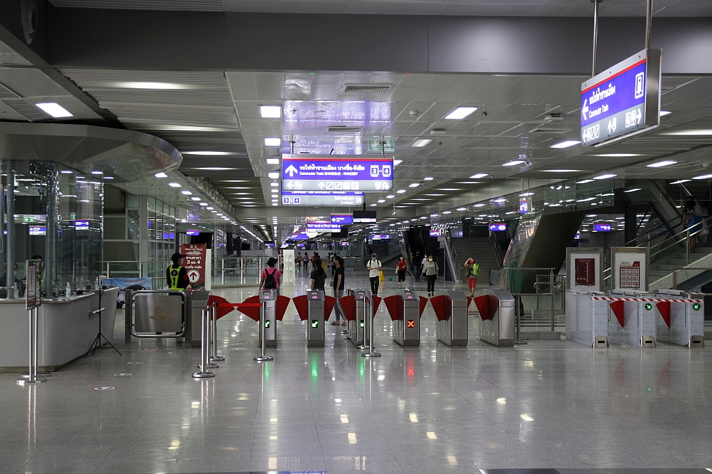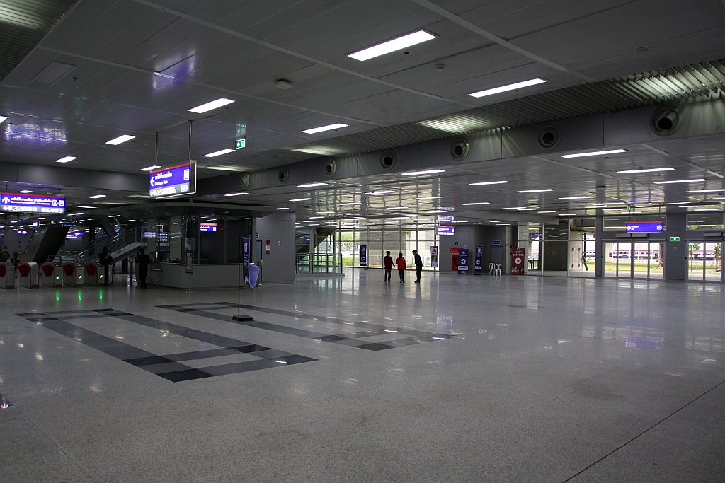 Fußgängerübergang zur SRTET Bang Sue Grand Station (RN01/RW01) am 01.Mai 2022. Links erkennt man das südliche Ende der SRT Bang Sue Junction.