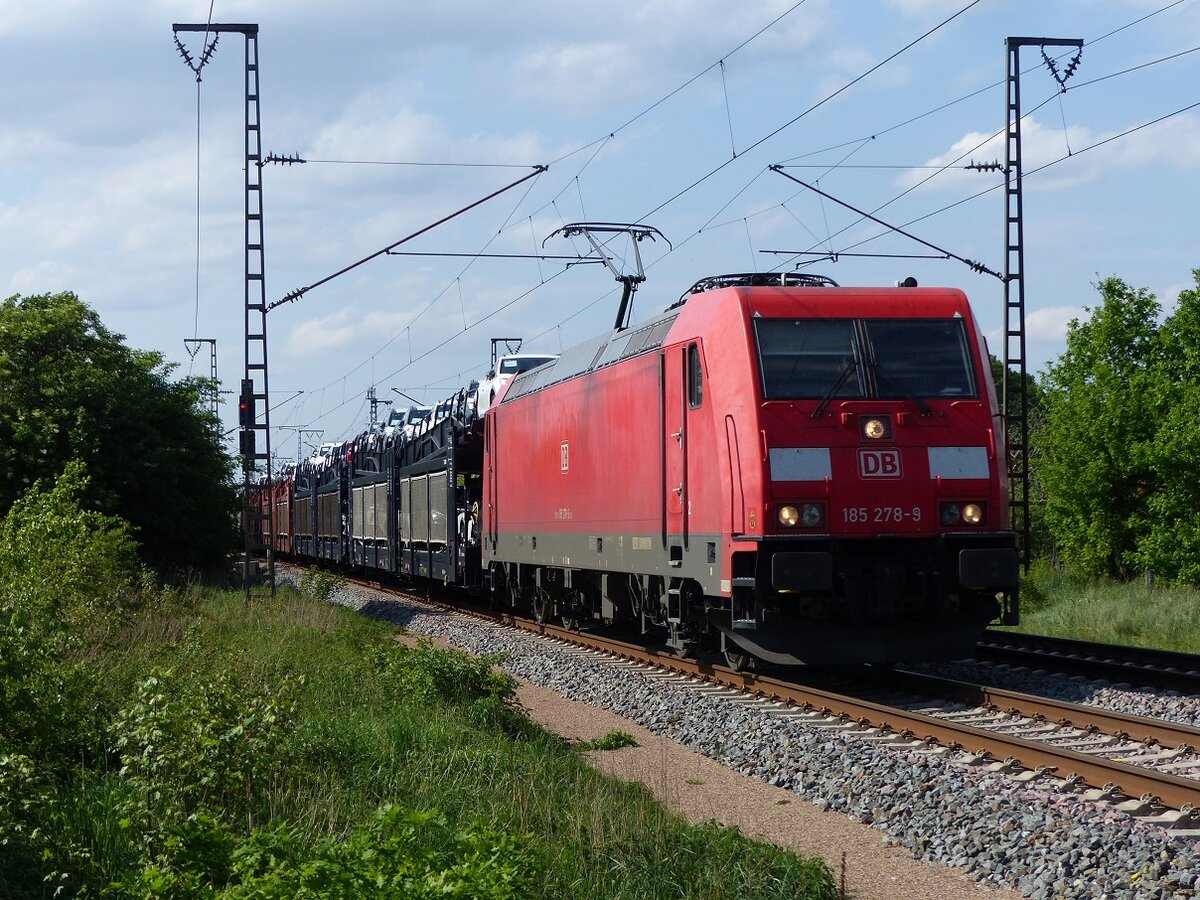 DBC 185 235 kommt mit einem modellbahngerechten Mischer durch Thüngersheim gen Gemünden gefahren.10.5.2022