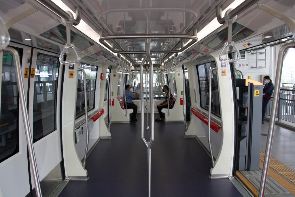 Innenansicht des BTS GA101 (Type APM 300, CRRC Puzhen Bombardier, Baujahr 2020) am 30.April 2022 in der Khlong San Station (G3).