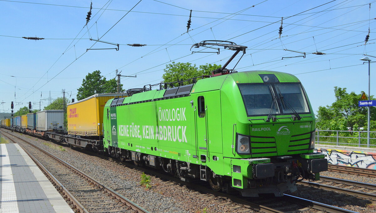 TX Logistik AG, Bad Honnef [D] mit der Railpool Vectron "193 996-6" [NVR-Nummer: 91 80 6193 996-6 D-Rpool] und KLV-Zug am 16.05.22 Durchfahrt Bf. Saarmund.