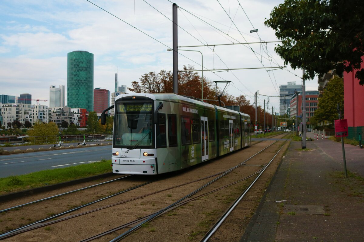 VGF Bombardier Flexity Classic S-Wagen 257 mit neuer Werbung am 24.09.22 in Frankfurt am Main