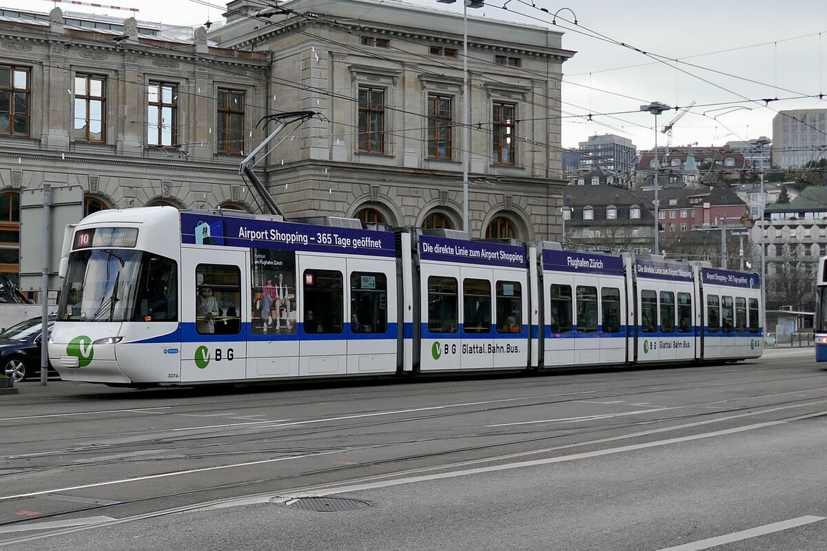 VBZ Cobra Tram Be 5/6 3083 am 4.4.23 vor dem Hauptbahnhof in Zürich.