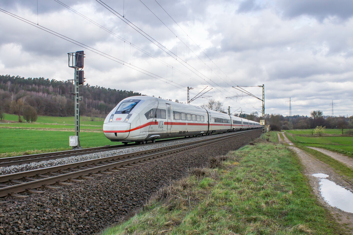 ICE 812 005-8 ist am 22.03.2023 bei Kerzell in Richtung Frankfurt/M. unterwegs.