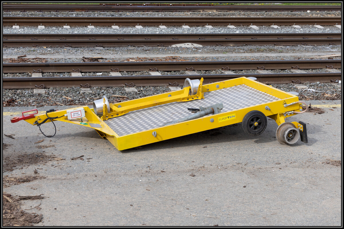 Kurios was es alees auf Schienen gibt ,... Im Zuge der Elektrifizierung der GKB kommt so manches Fahrzeug daher sowie dieser  Anhänger  Hier zu sehen in Wies Eibiswald wo dieser Tage die montage an der Fahrleitung begann. 3.04.2023