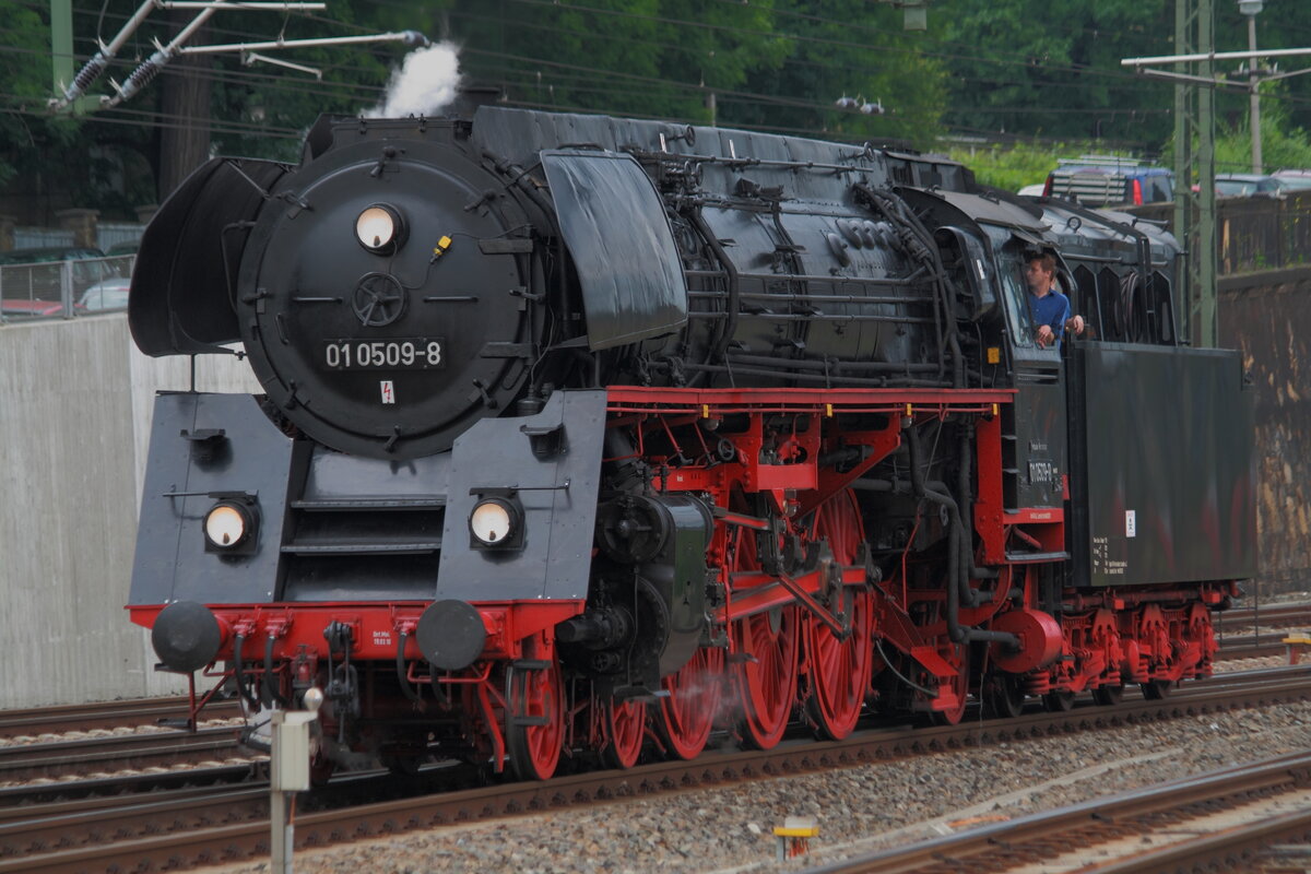 Lok 01-0509 kommt vom Bw-DD-Altstadt vom Wasserfassen, um den Sonderzug nach Prag zu übernehmen. 12.06.2010 (09:20:12).
