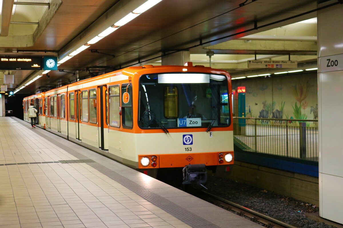 Der NGT8 auf der Linie 8 befindet auf dem mittleren der drei Gleise am Bahnsteig der Haltestelle 'Weingartenstraße, Hbf.'