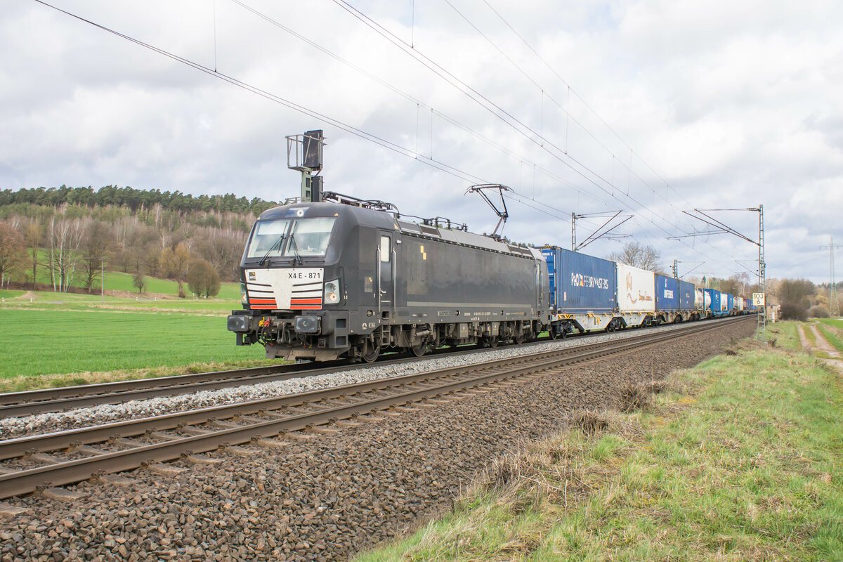X4E -871 (93 871-1) mit einem Containerzug bei Kerzell am 22.03.2023.