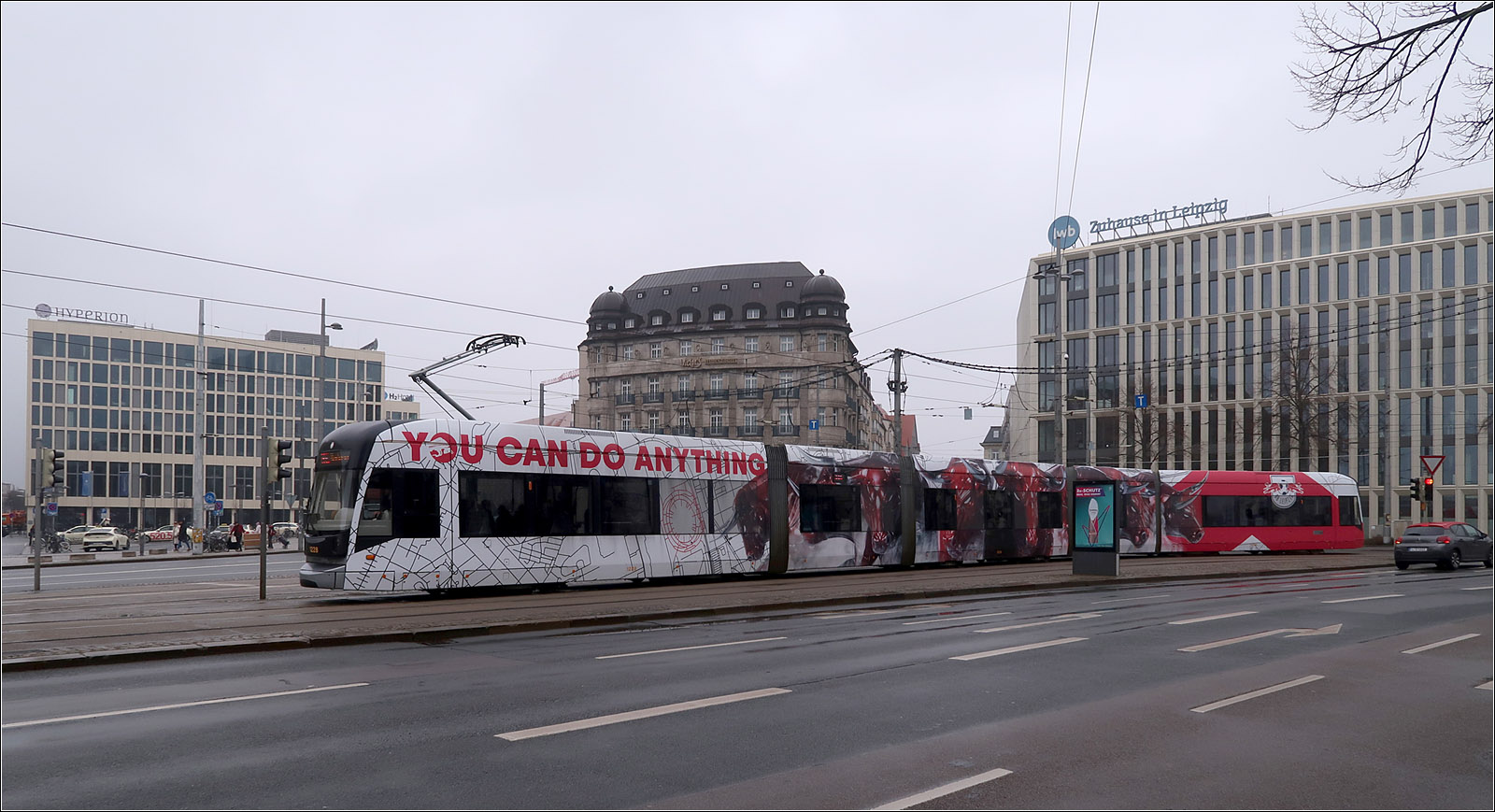 ... sind die NGT12-LEI classicXXL-Straßenbahnen von Bombardier. Hier Wagen 1228 auf der Linie 11E am Willy-Brandt-Platz beim Leipziger Hauptbahnhof.