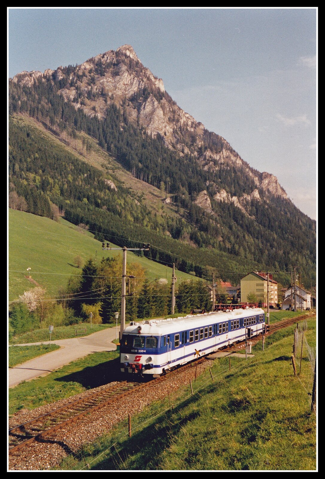 Der berühmte Gmundener Seebahnhof mit einem Uerdinger Schienenbuszug der ÖBB-Lokalbahn Lambach-Gmunden. Wer hier bei einem Besuch noch einen Bahnhof erwartet, der sei leider nur noch auf frühere Fotos von diesem Gebäude verwiesen, der Bahnhof ist nur noch in der Phantasie lebendig, die ÖBB-Lokalbahn nach Lambach ebenso. Datum: 06.04.1986