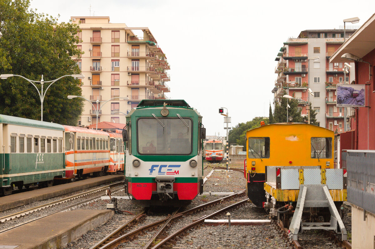 ADE14+17 erreichen als FCE Borgo-Randazzo am 03.04.2023 den Bahnhof Adrano.