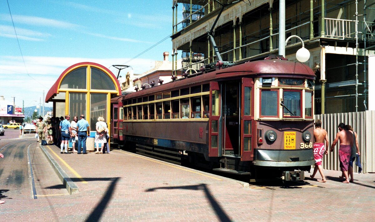 Adelaide Glenelg Tram__Tw 366 an der "Endstation Strand" in Glenelg. Auf den Strand sind es tatsächlich nur wenige Schritte !__07-01-1989