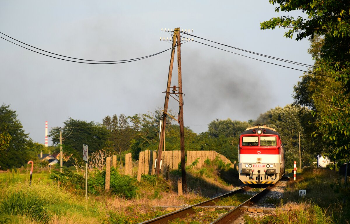Das Bild zeigt die 754 070 ist mit dem Abendzug 4342 in Bf. Komárno Nová Stráž (Örsújfalu).