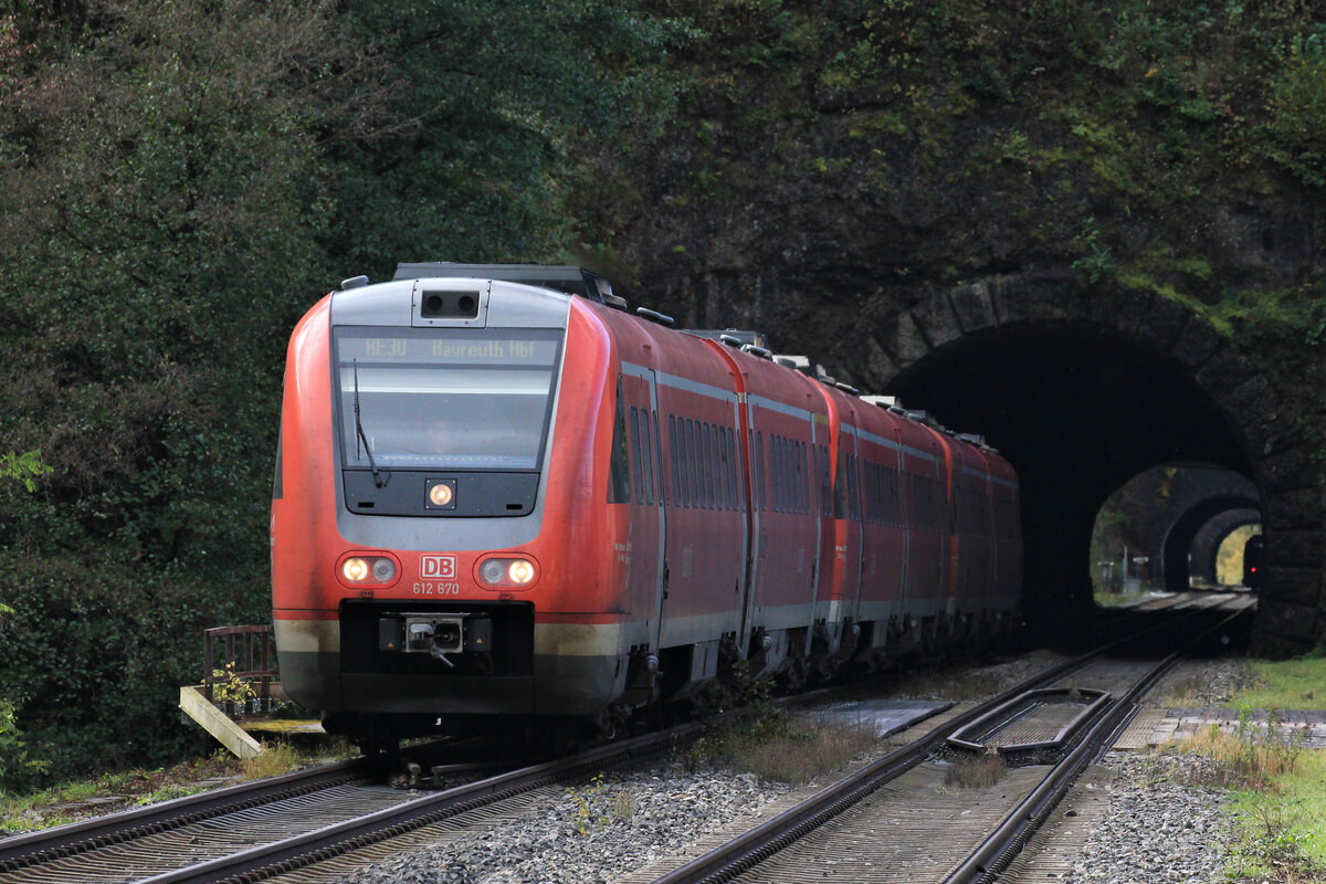 612 170 als RE 30 Hof-Nürnberg am 21.10.2023 in Schnabelwaidt.