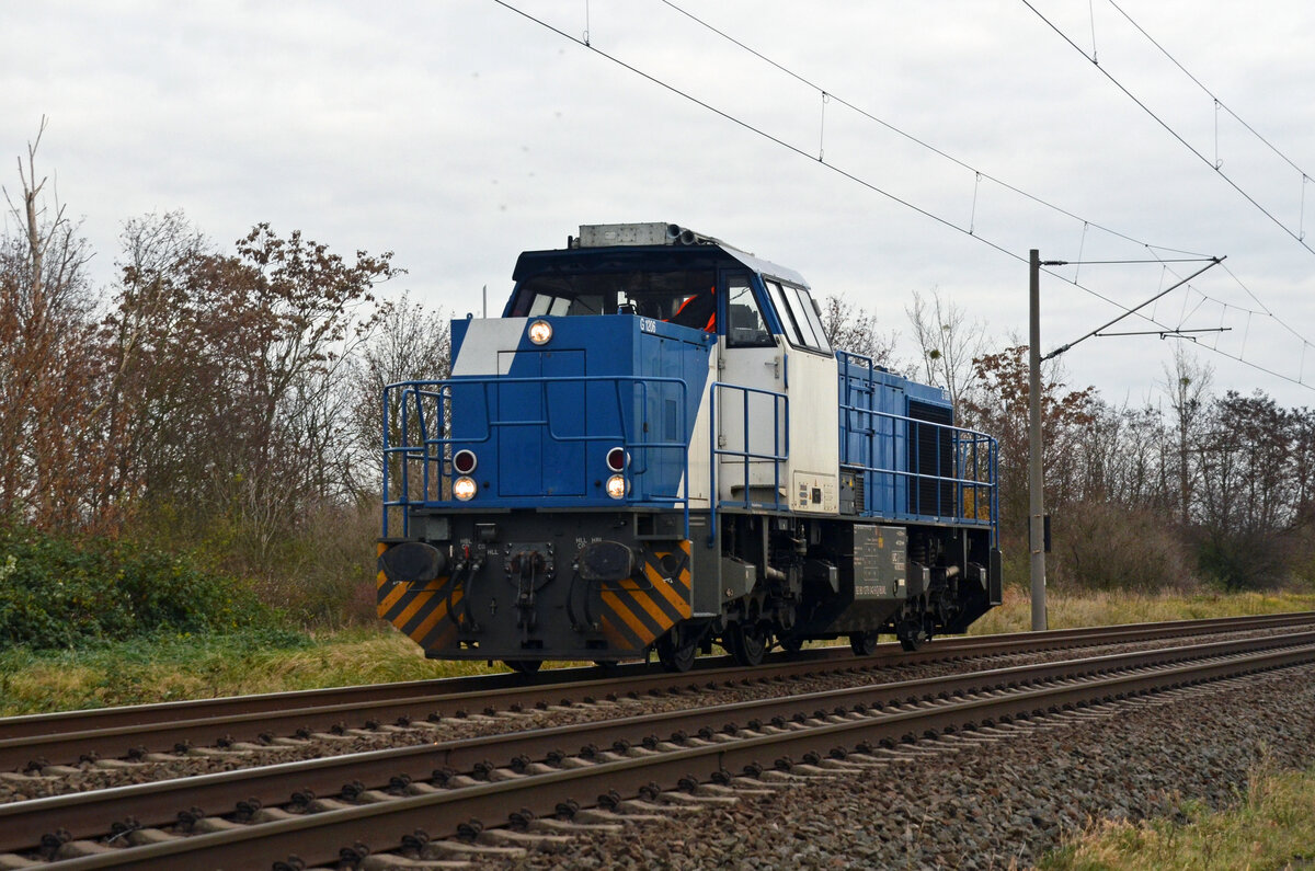 Mit einem Umlauf des Kohlependels zwischen den Braunkohlekraftwerken Wählitz und Schkopau war 275 213-7 (Lok 213 | Vossloh G 1206) betraut. Sie wurde bei Spergau, einem Ortsteil von Leuna, fotografiert. 🧰 Mitteldeutsche Eisenbahn GmbH (MEG) 🕓 12.11.2023 | 14:21 Uhr