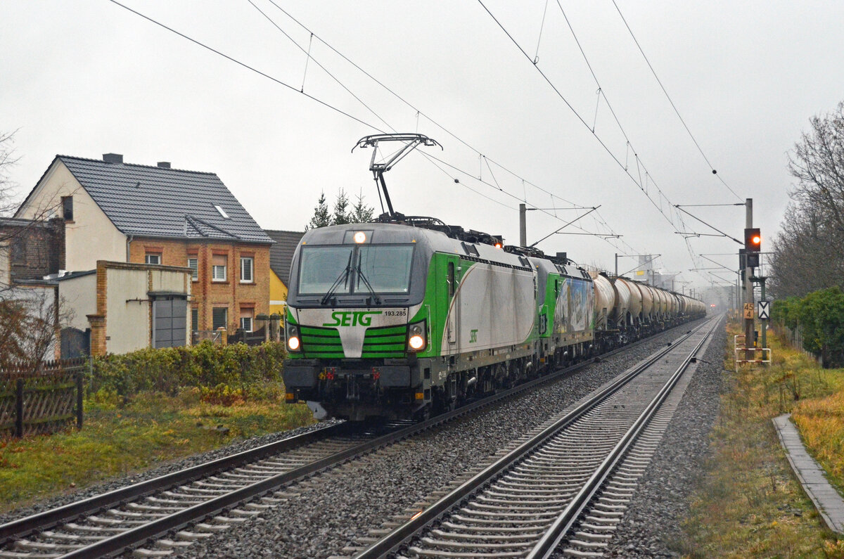 ecco-rail GmbH, Wien [A] mit der Railpool Vectron "193 990" [NVR-Nummer: 91 80 6193 990-9 D-Rpool] und einem Kesselwagenzug (leer) Richtung Stendell am 29.12.23 Durchfahrt Bahnhof Berlin-Hohenschönhausen.