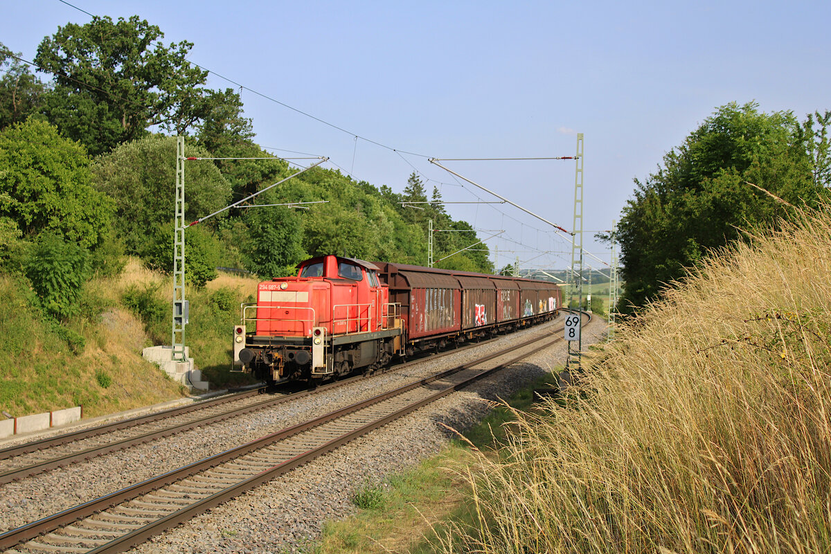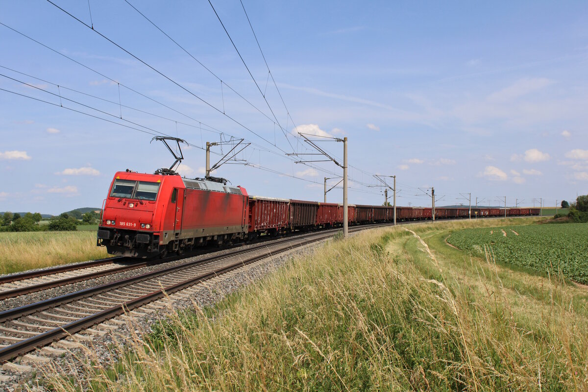 DB 152 020-4 fährt mit einem Kohlezug durch Oberdachstetten in Richtung Würzburg. (20.06.2023)