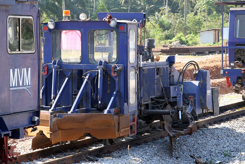 Infolge des 2 gleisige Ausbau trifft man in den Stationen entlang der Southern Line auf Bahndienstfahrzeuge der unterschiedlichsten Unternehmen. - Am 08.Dezember 2023 konnte man in der Khao Chaiyarat Station verschiedene Bahndienstfahrzeuge des Unternehmen MVM antreffen, darunter einen Schotterpflug ohne Betriebsnummer.