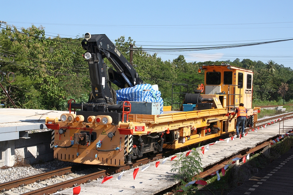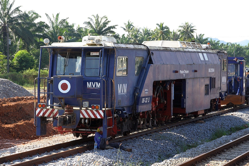 Infolge des 2 gleisige Ausbau trifft man in den Stationen entlang der Southern Line auf Bahndienstfahrzeuge der unterschiedlichsten Unternehmen. - Am 08.Dezember 2023 konnte man in der Khao Chaiyarat Station verschiedene Bahndienstfahrzeuge des Unternehmen MVM antreffen, darunter eine Gleisstopfmaschine (Hersteller: Plasser & Theurer, Type 08-32U, Baujahr: ???, Fab.Nr.: ???) mit der Betriebsnummer T2.