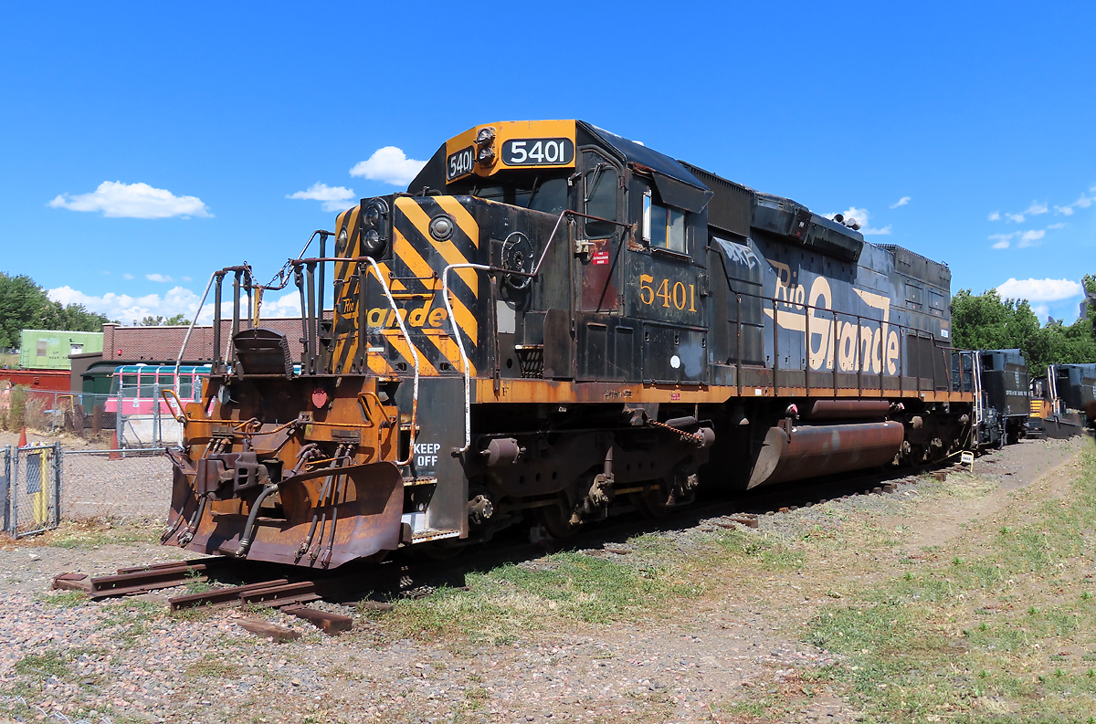 Die wunderschöne Diesellok des Touristenzuges in die Royal Gorge Schlucht. Das Foto wurde von einem Bahnübergang aus gemacht. Cañon City, 29.8.2022