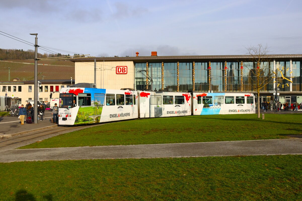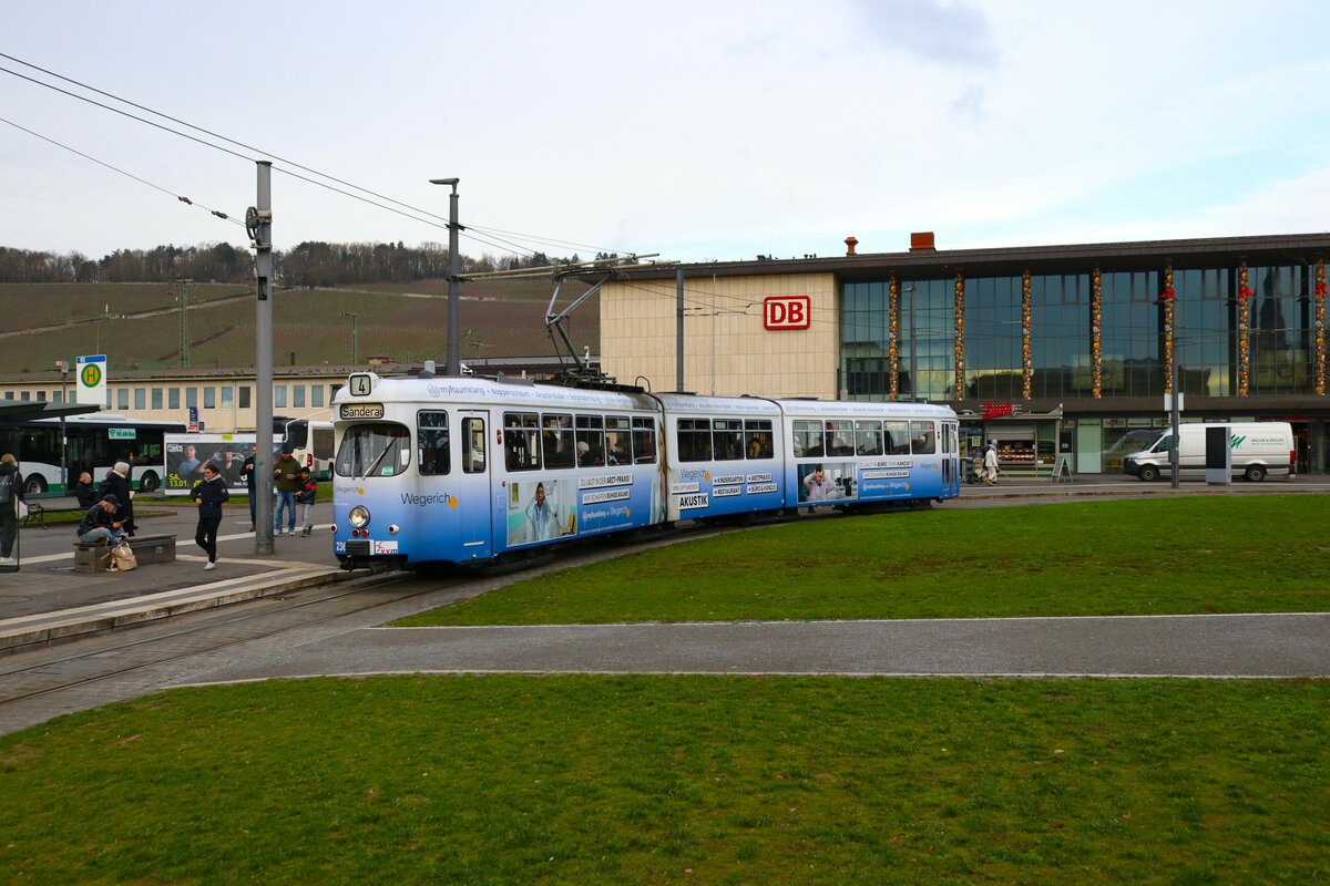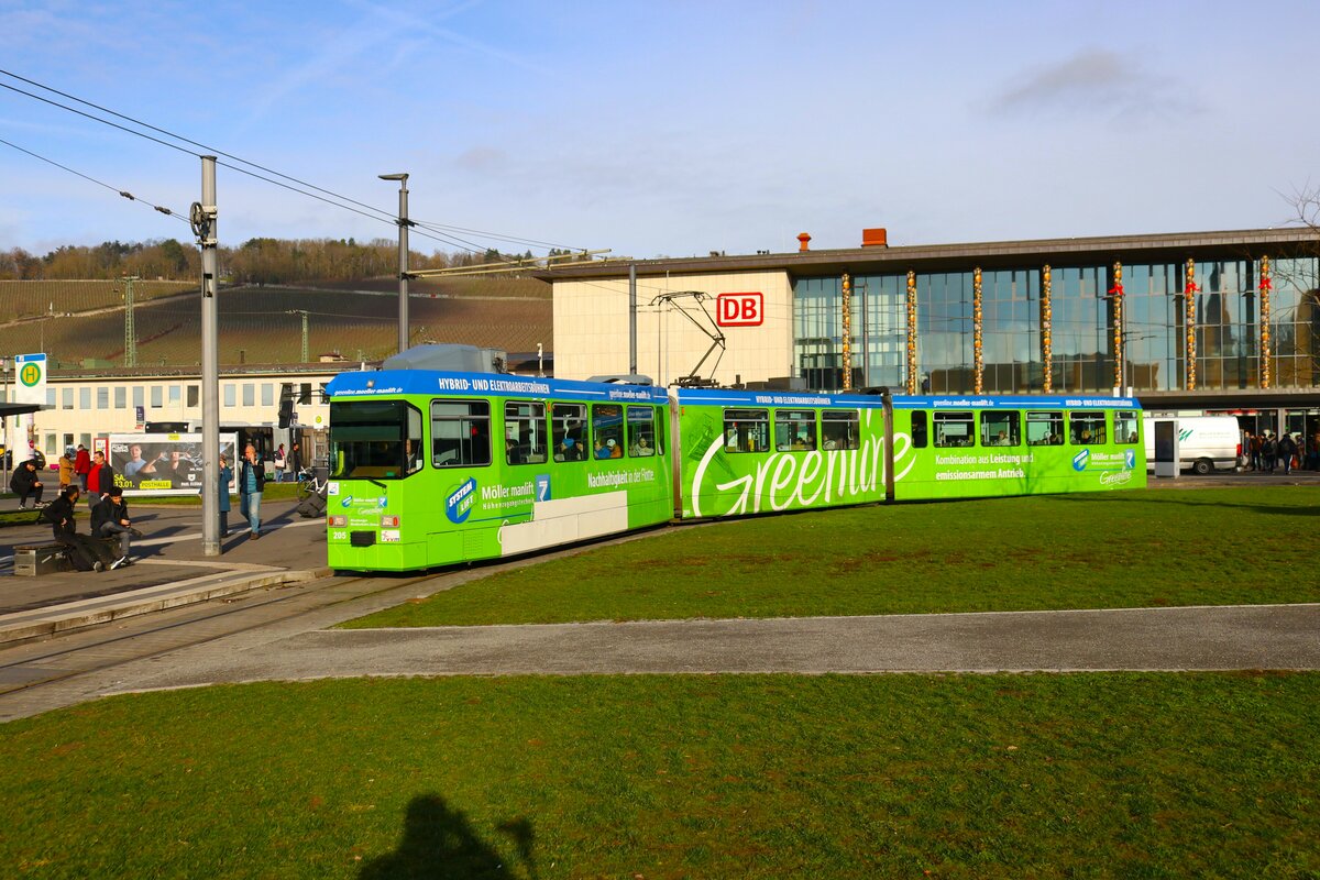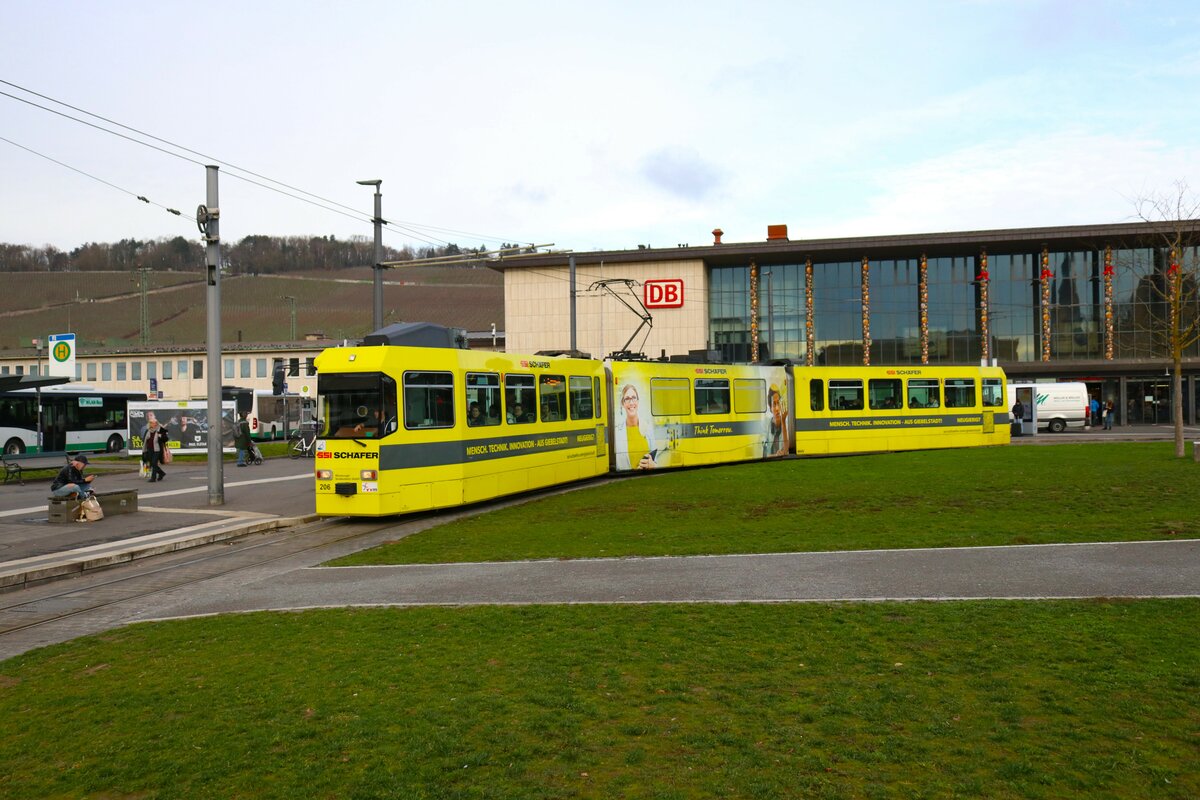 WVV Straßenbahn Würzburg LHB GT-E Wagen 206 am 27.12.23 in Würzburg Hbf