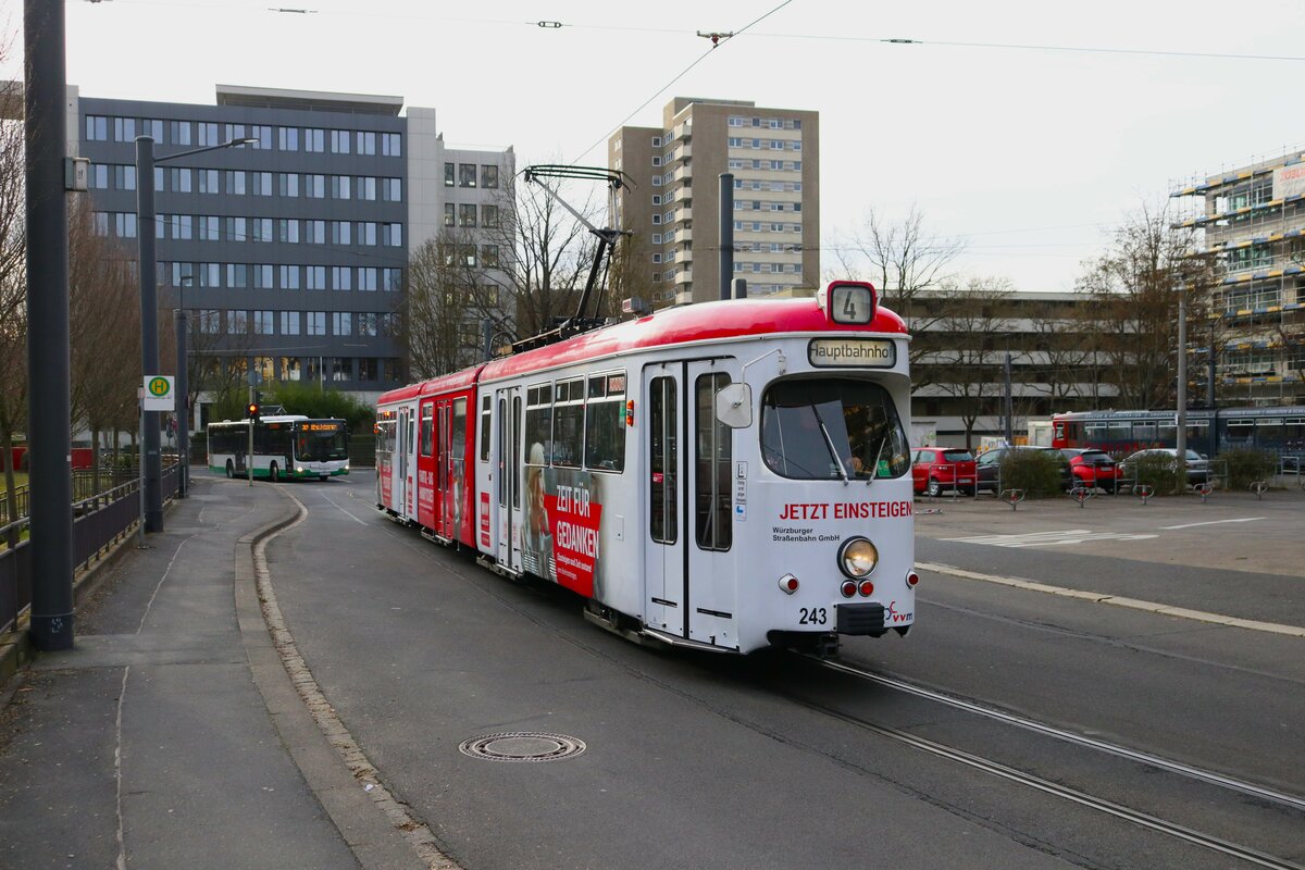 WVV Straßenbahn Würzburg Düwag GTW D8 Wagen 243 am 27.12.23 in Würzburg