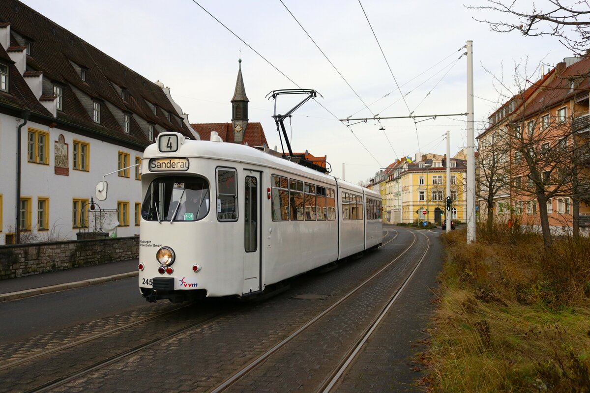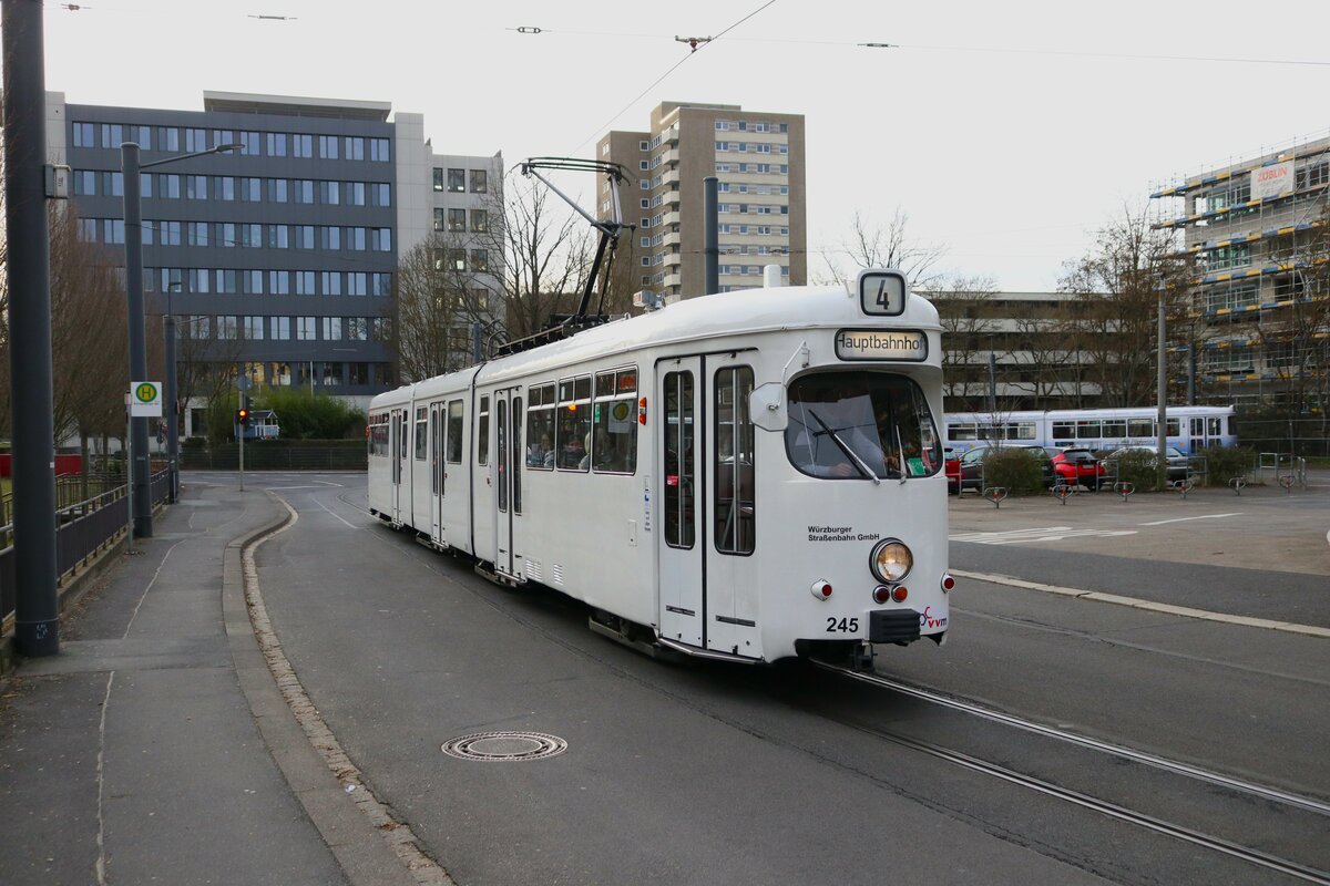 WVV Straßenbahn Würzburg Düwag GTW D8 Wagen 245 am 27.12.23 in Würzburg