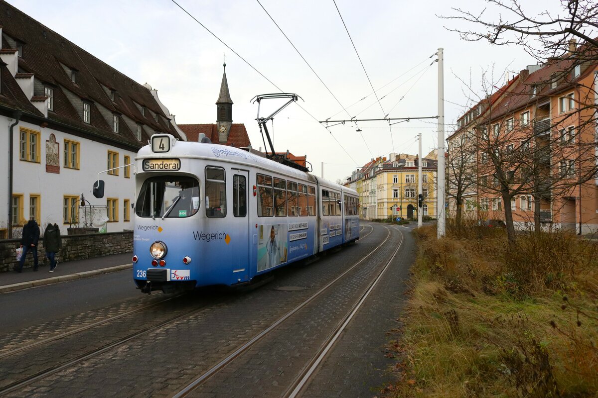 WVV Straßenbahn Würzburg Düwag GTW D8 Wagen 236 am 27.12.23 in Würzburg