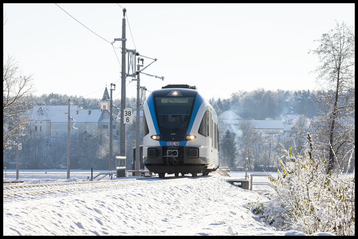 In kürze erreicht das Pärchen GTW 2/8 den Bahnhof St. Martin im Sulmtal Bergla. 5.12.2023