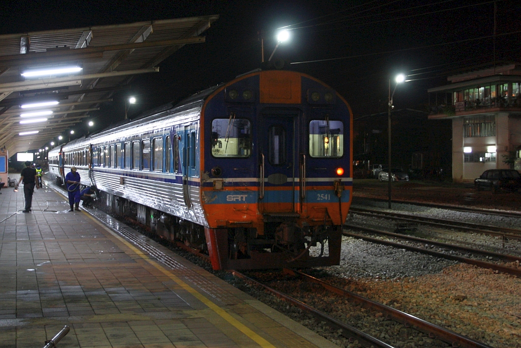 APD.60 2541 als letztes Fahrzeug des SpExp 43 von Krung Thep Aphiwat ist am 06.Dezember 2023 im Zielbahnhof Surat Thani Station angekommen und wendet nun auf den SpExp 44 nach Krung Thep Aphiwat.