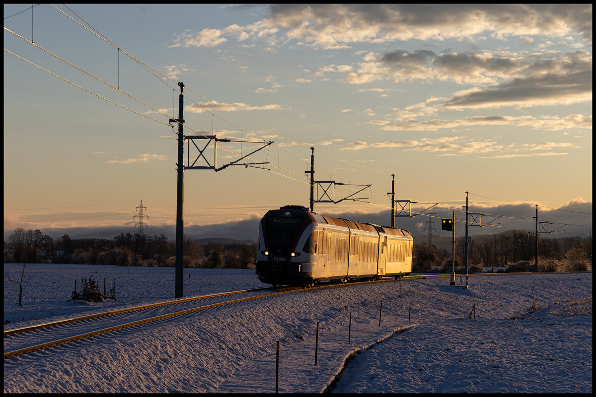 Mit Fahrplanwechsel am kommenden Sonntag heißt es Abschied nehmen von der Bahnhaltestelle Langkampfen an der Unterinntalbahn. Diese soll dauerhaft geschlossen werden, da die Fahrgastzahlen zu gering seien und der Halt in Schaftenau ebenso auf Langkampfener Gemeindegebiet liege. Fraglich bleibt, ob die in letzter Zeit doch recht zahlreich durchgeführten Haltestellenschließungen in Zeiten des gesellschaftlichen Dauerthemas Klimaschutz sinnvoll sind beziehungsweise welches Signal dadurch ausgesendet wird. Am 04.12.2023 hielt der 4024 062-3 als S 5120 (Kufstein - Telfs-Pfaffenhofen) als eine der letzten S-Bahnen überhaupt in der besagten Haltestelle und konnte bei der Ausfahrt Richtung Wörgl im Spätnachmittagslicht festgehalten werden.