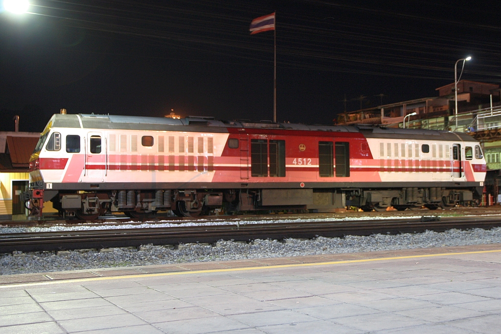 HID 4512 (Co'Co', de, Hitachi, Bauj. 1993) wartet am 06.Dezember 2023 in der Surat Thani Station auf ihren nächsten Einsatz.