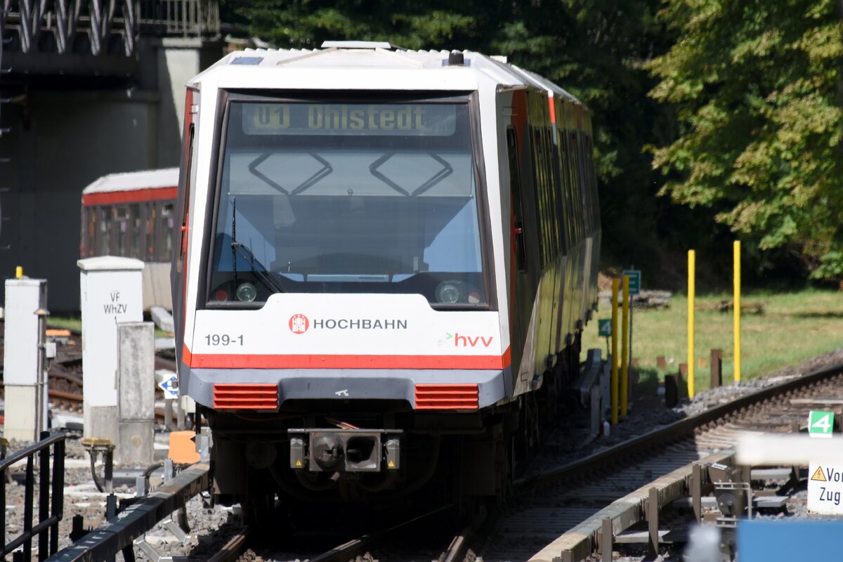 HAMBURG, 01.08.2022, U 1 nach Kellinghusenstraße bei der Einfahrt in den U-Bahnhof Oldenfelde (Linie U 1)