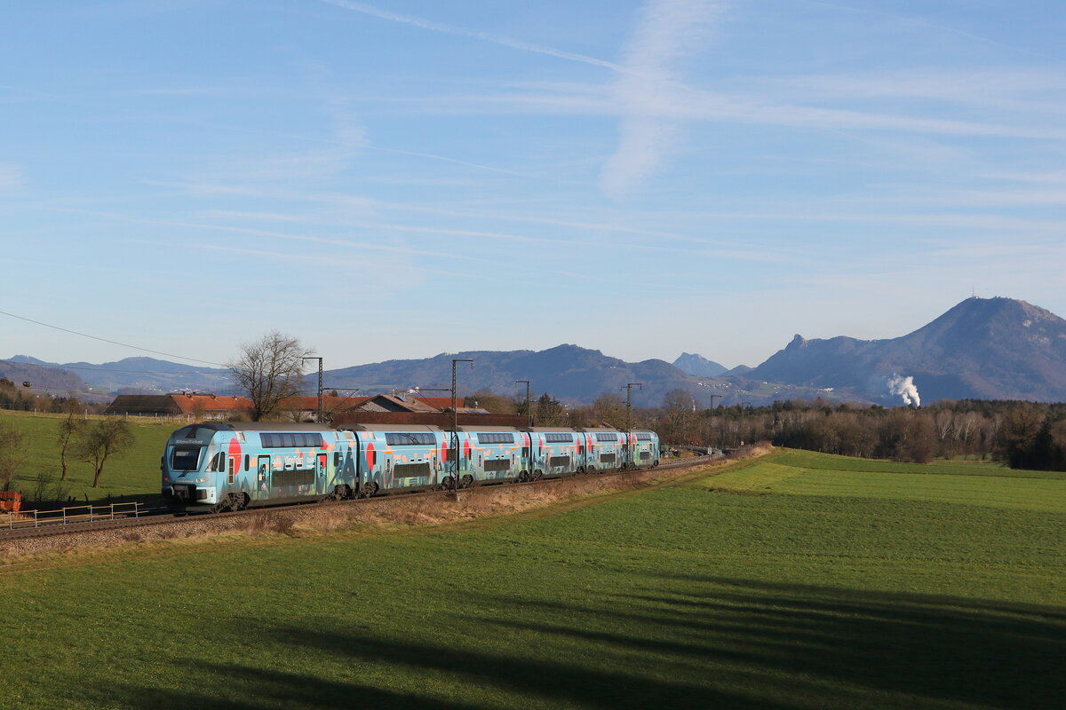 4010 028 die "Klima-Westbahn" war am 6. Januar 2023 bei Niederstraß in Richtung Salzburg unterwegs.