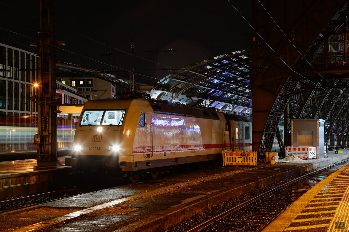 DB 101 013 "IC" mit IC2205 in Köln Hbf, Januar 2023.