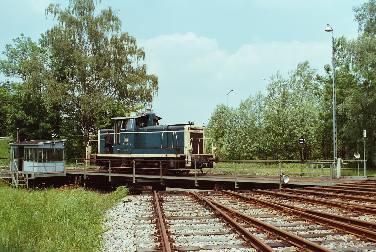 DB-Rangierlok des Typs Köf II. Ich entdeckte diese Lok mit der Nummer 323 902-7 vor dem Depot der DB in Rosenheim. Ob sie 1984 noch genutzt wurde, ist fraglich.