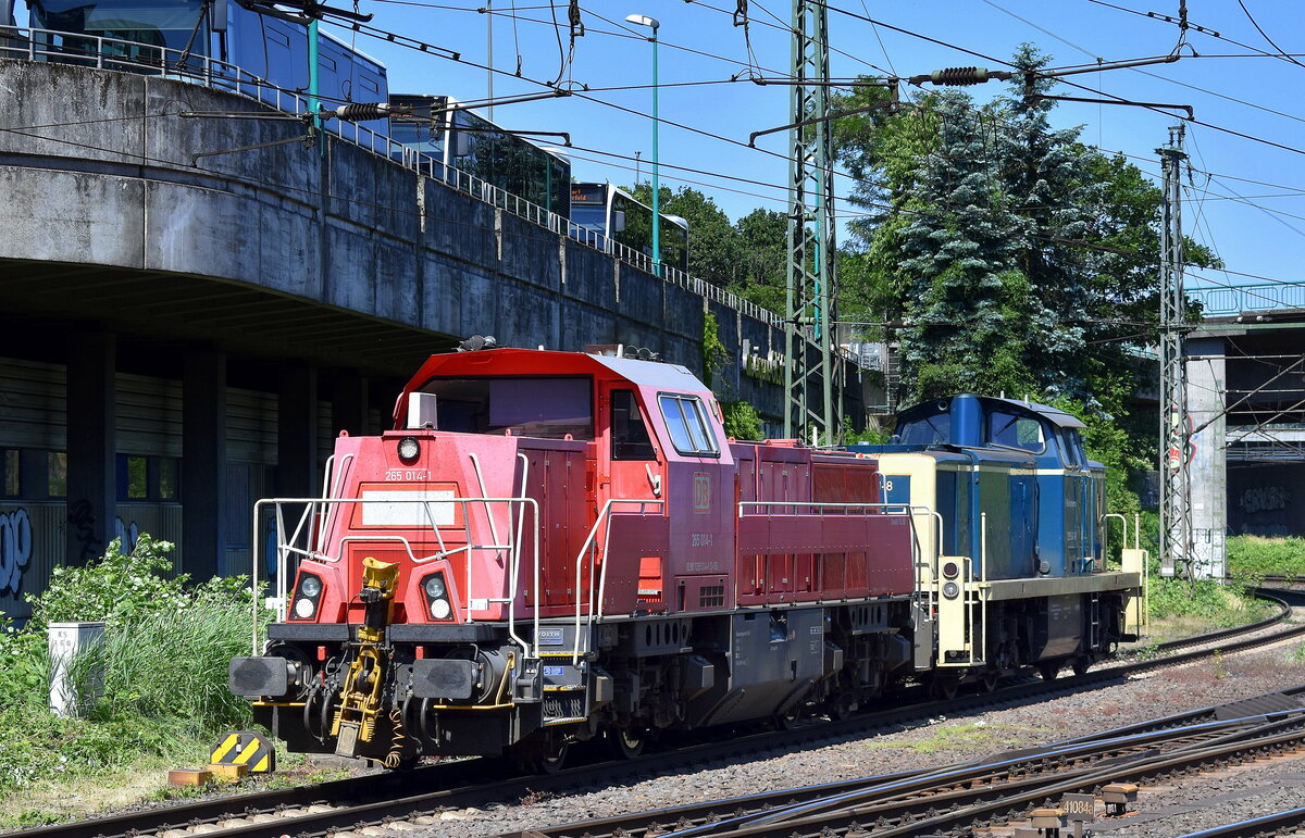 DB Cargo AG, Mainz mit ihrer "265 014-1" (NVR: "92 80 1265 014-1 D-DB") und der angemieteten Railsystems RP GmbH Lok "295 041-8" (NVR: "98 80 3295 041-8 D-RPRS") am Haken am 13.06.23 Vorbeifahrt Bahnhof Hamburg-Harburg.