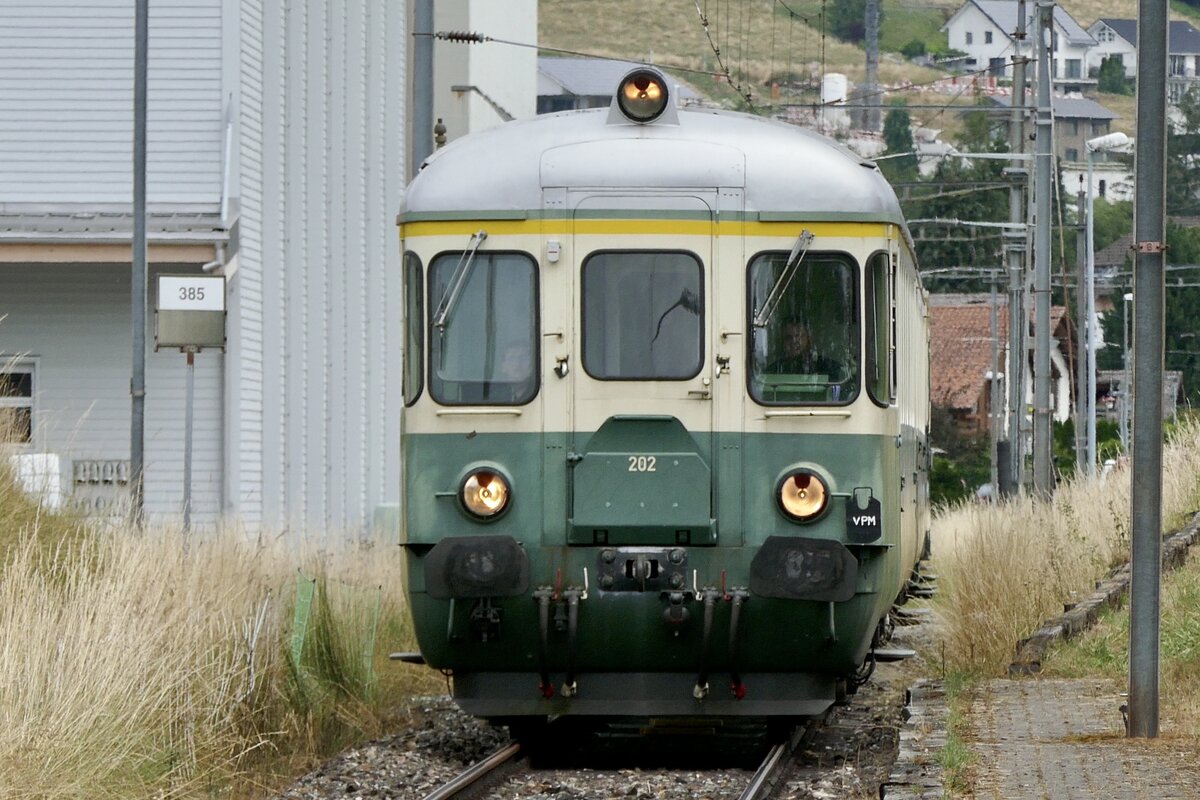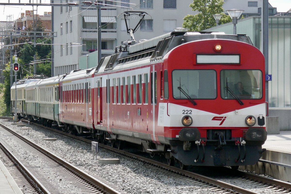 Der RBDe 566 I 222 der der VPM von der CJ übernehmen konnte mit dem Mirage zusammen am 1.7.23 bei der Einfahrt in Huttwil.