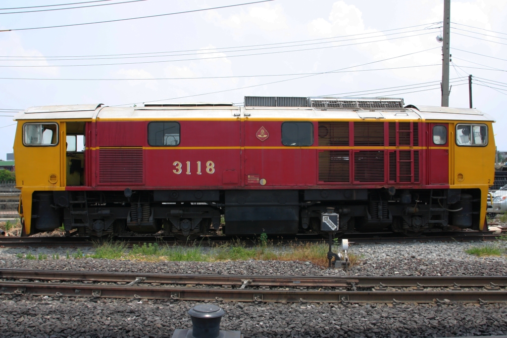 Eine der letzten aktiven Ihrer Baureihe: 3118 (B'B', dh, Krupp, Bauj.1969, Fabr.Nr.5007) am 28.April 2023 im Depot Thon Buri.