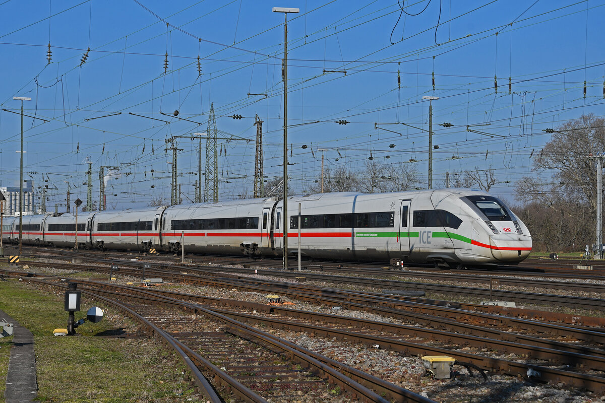 ICE 4 5812 014-9 verlässt am 07.02.2023 den badischen Bahnhof.