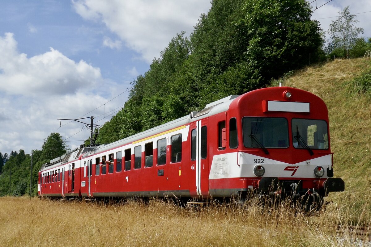 Der RBDe 566 I 222 des VPM unterwegs auf der Emmentalbahn nach Sumiswald am 1.7.23 bei Gammenthal.