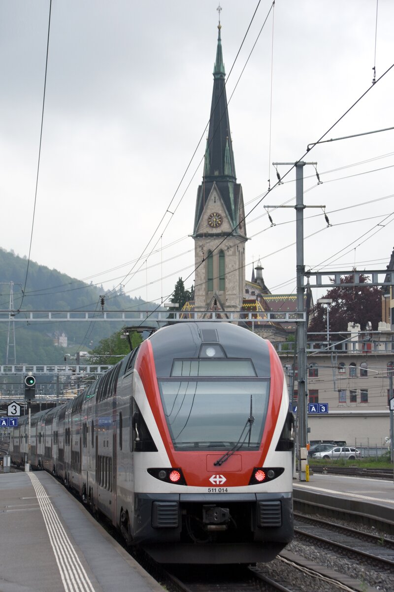 ST. GALLEN (Kanton St. Gallen), 13.05.2023, 511 014 als EC nach Zürich bei der Ausfahrt aus St. Gallen
