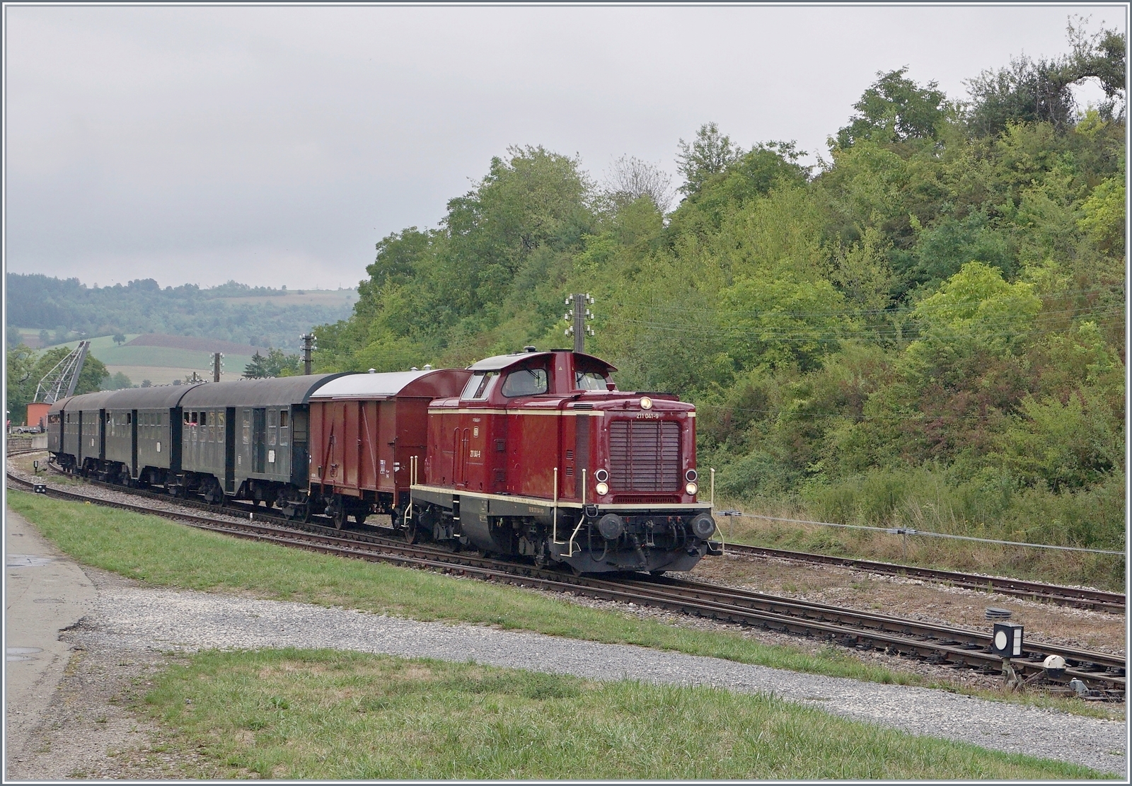 Hätte beim Planverkehr jeweils ein solcher Besuchererfolg geherrscht, würde wohl heute hier keine Museumsbahn fahren; doch die Gegebenheiten der Sauschwänzlebahn für einen erfolgreichen Reisezugverkehr sind natürlich alles andere als ideal. Die Diesellok 211 041-9 (92 80 1211 041-9 D-NeSA) steht mit "Morgenzug" zur Rückfahrt nach Zollhaus Blumberg in Weizen bereit. 27. August 2022