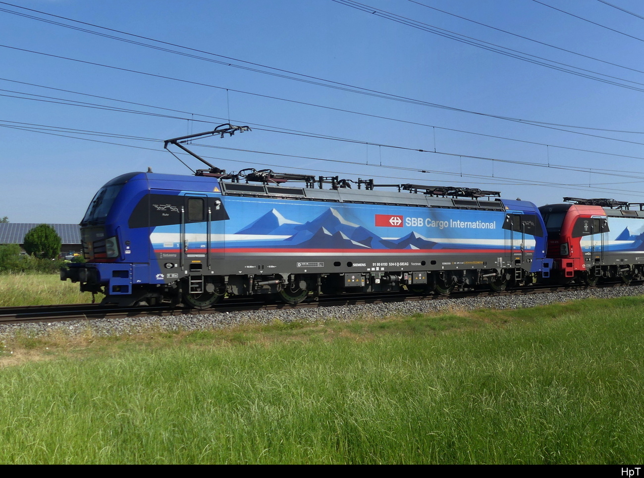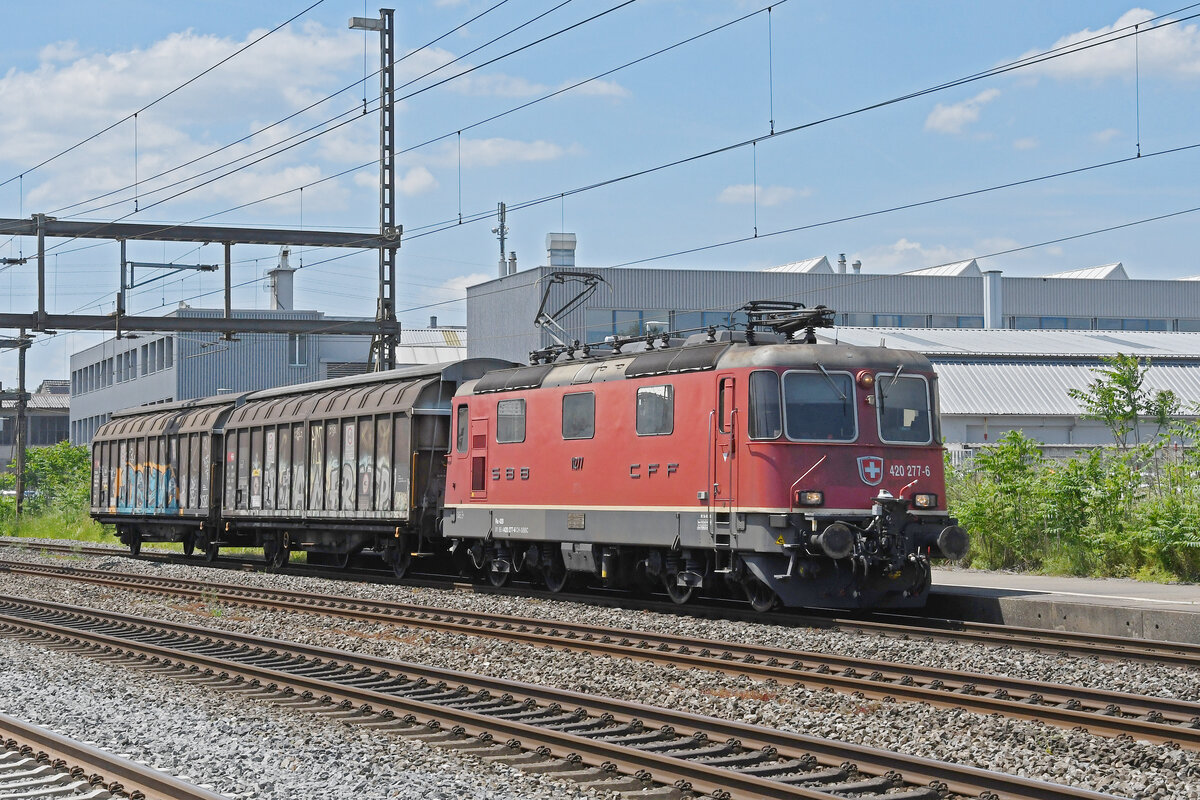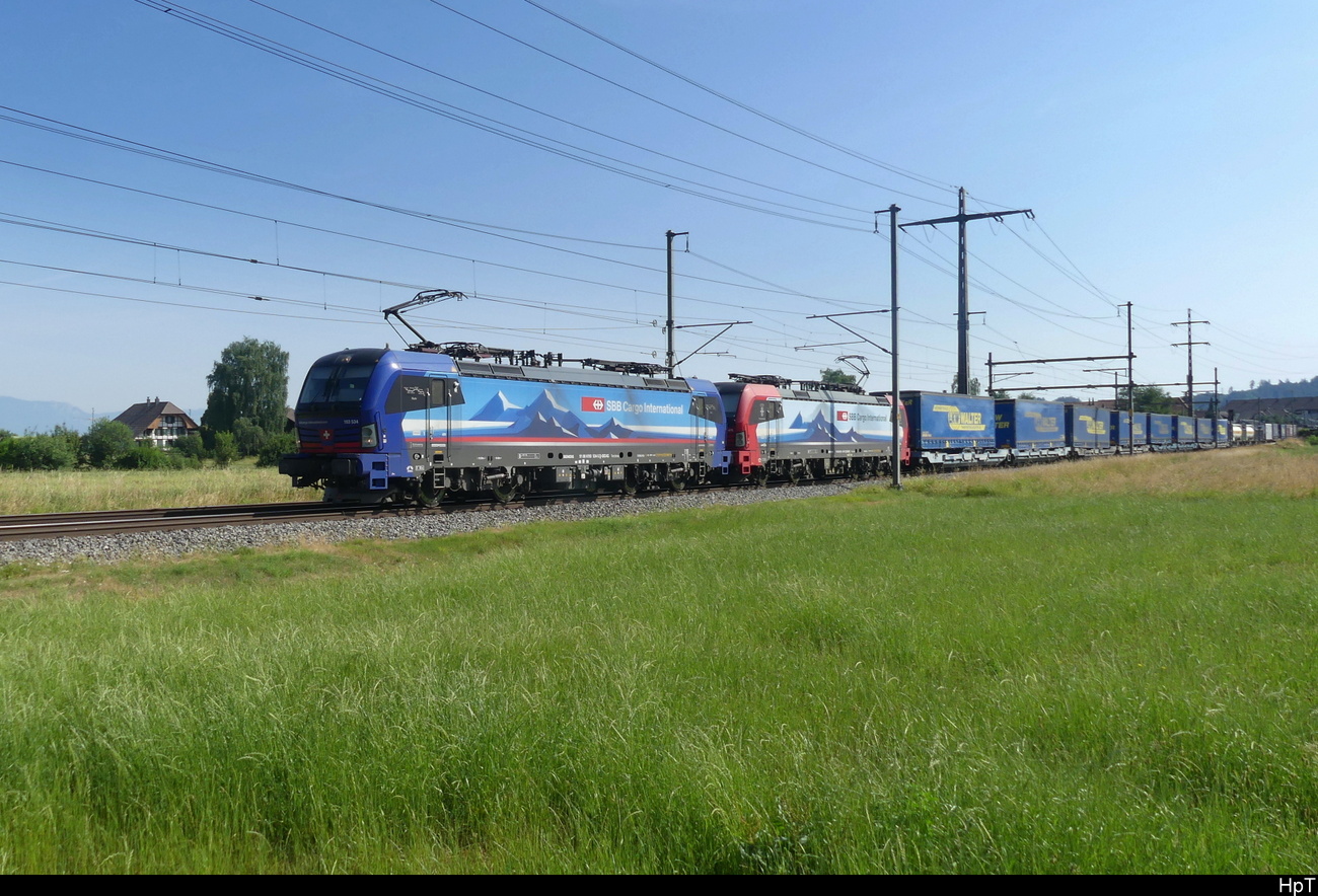Re 420 199 mit einem NJ am 06.06.2023 bei Sevelen.