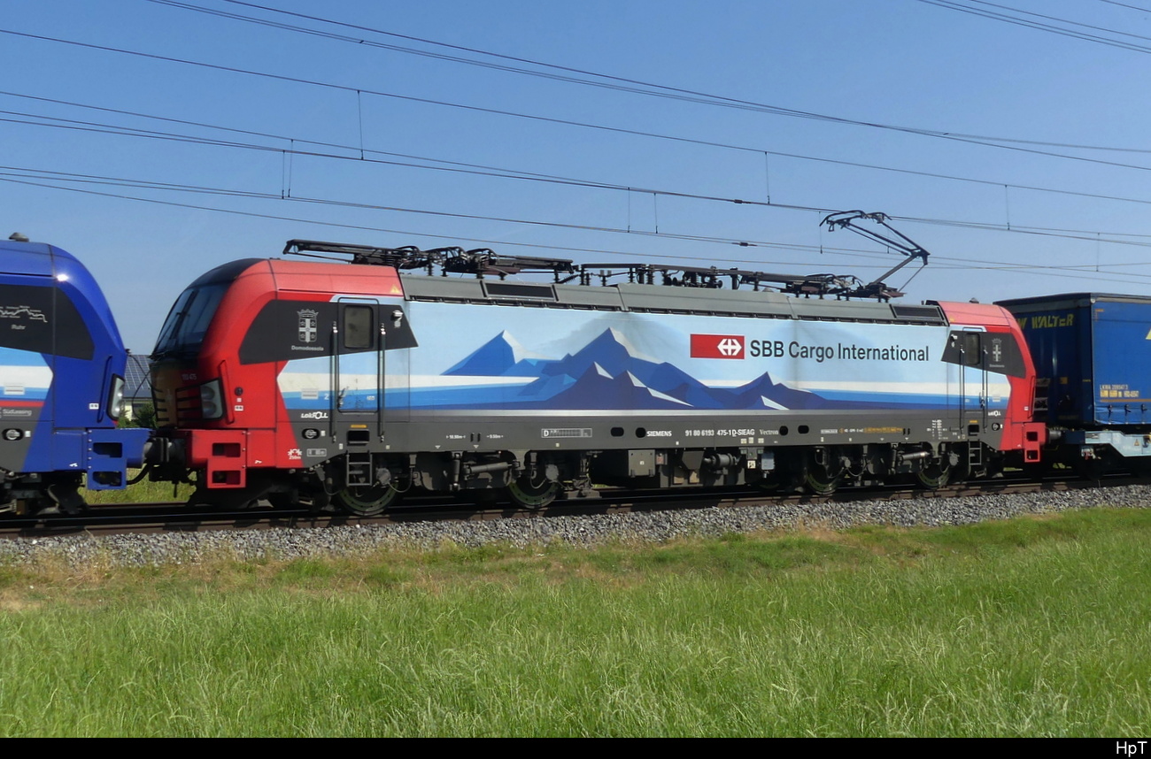 Siemens Vectron 475 423-0 der BLS durchfährt am 14.04.2023 den Bahnhof Pratteln.