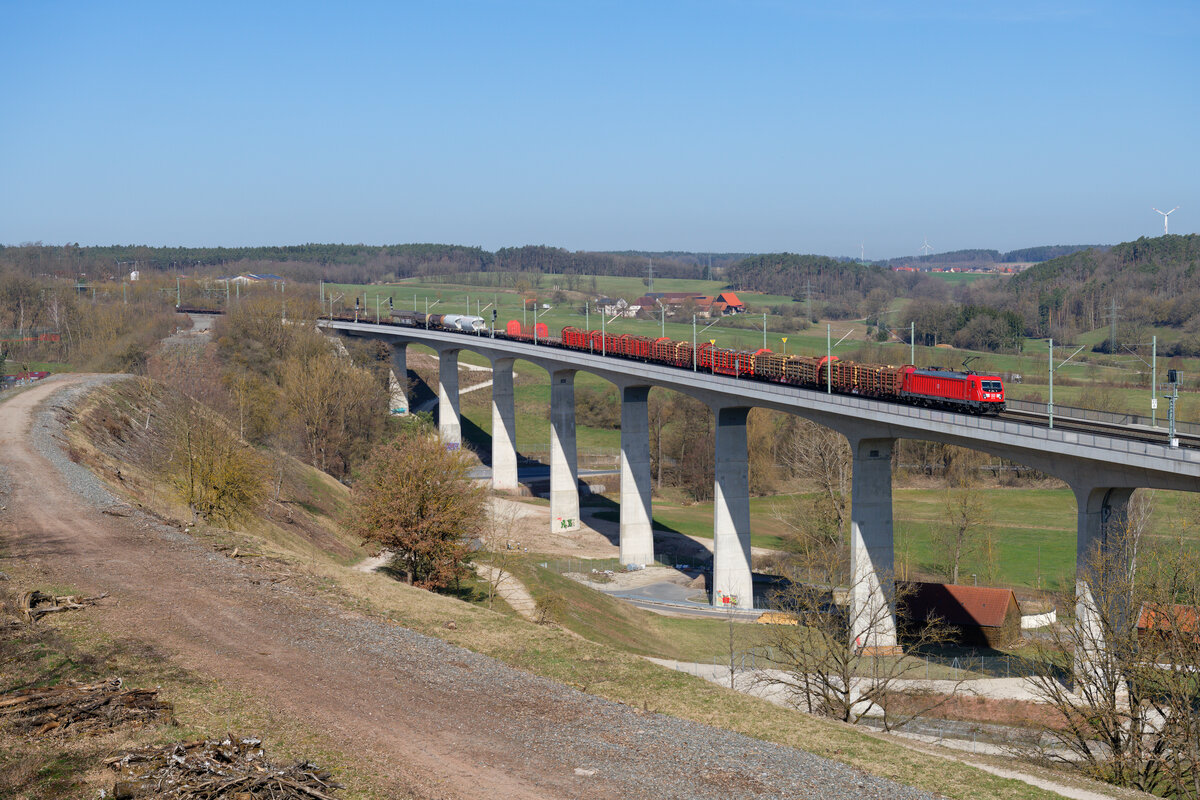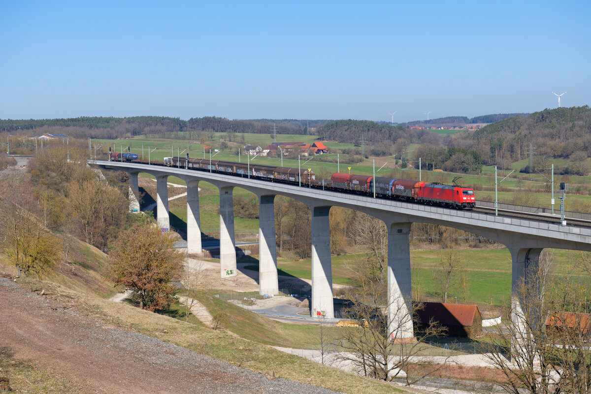 Am Abend des 02. Juni 2023 konnte ich bei Breitenfurt im Altmühltal die 187 120 mit einem Containerzug nach Norddeutschland aufnehmen.