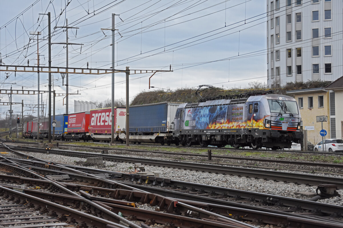 Siemens Vectron 193 282-1 durchfährt am 02.02.2023 den Bahnhof Pratteln.