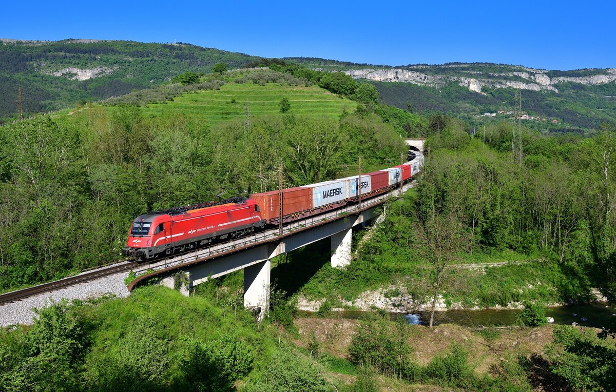 541 006 mit einem Containerzug am 05.05.2023 bei Rižana.