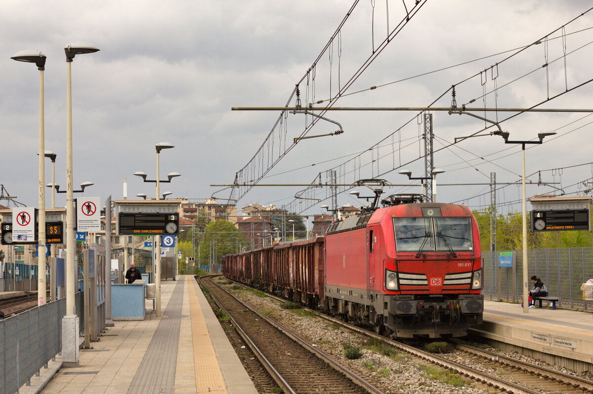 Lok 186 905-6 durchfährt am 27.04.2023 den Bahnhof Pratteln.